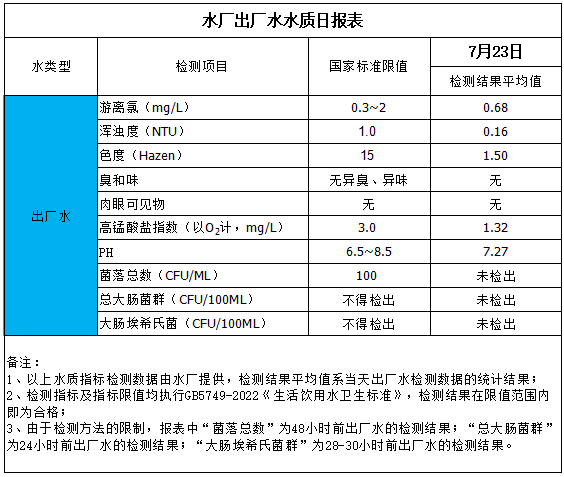 水廠出廠水水質日報表(2025-7-23)
