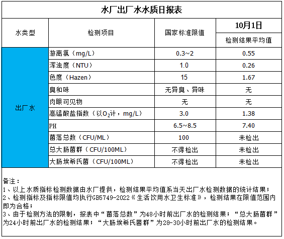 水廠出廠水水質日報表(2025-10-1)