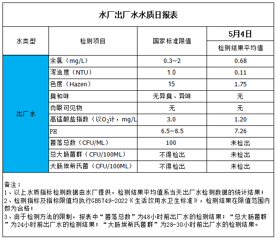 水廠出廠水水質(zhì)日?qǐng)?bào)表(2023-5-4)