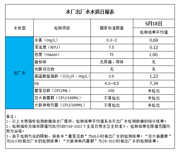 水廠出廠水水質日報表(2023-5-18)