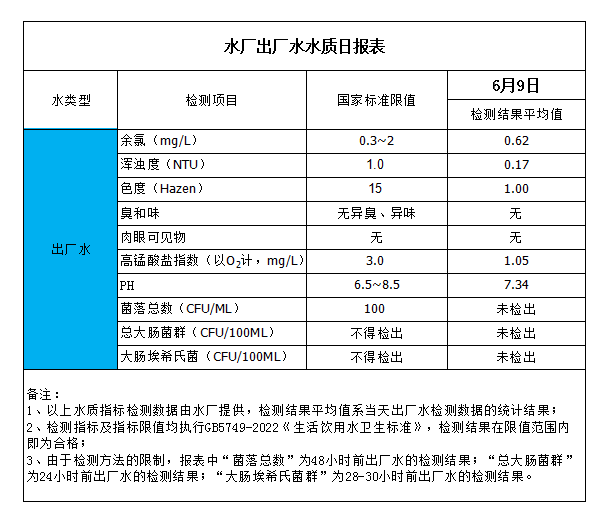 水廠出廠水水質(zhì)日報表(2023-6-9)