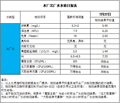 水廠出廠水水質日報表(2023-7-27)